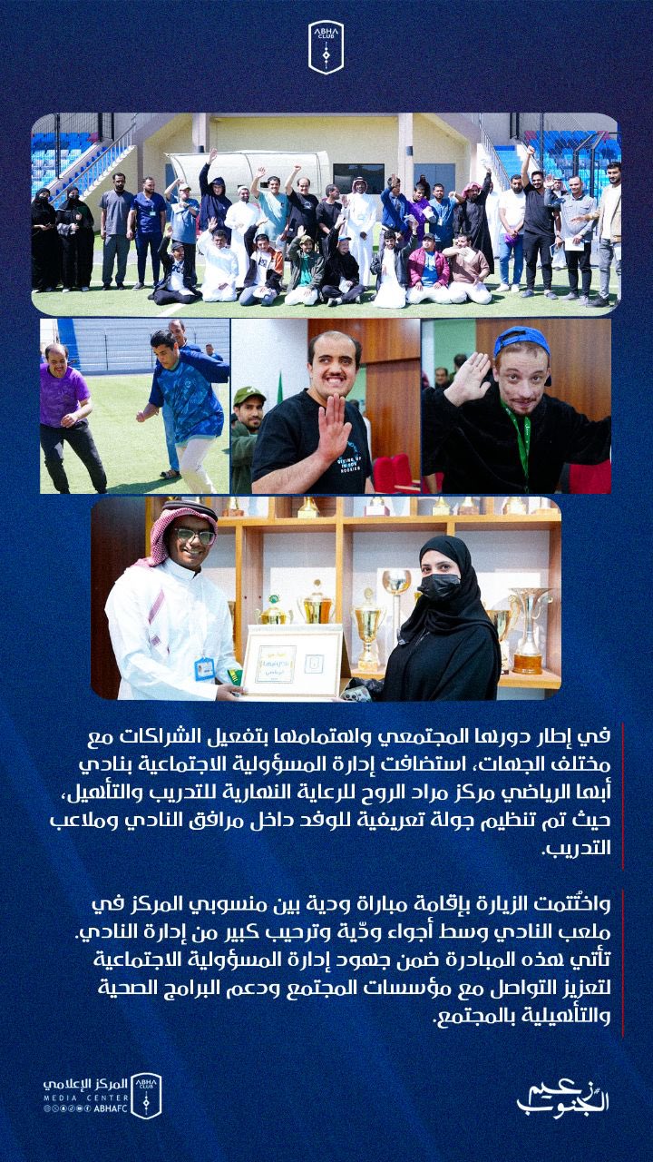 إدارة المسؤولية الاجتماعية بنادي أبها تستضيف مركز " مراد الروح " وتُقيم مباراة ودية مفعمة بالعطاء