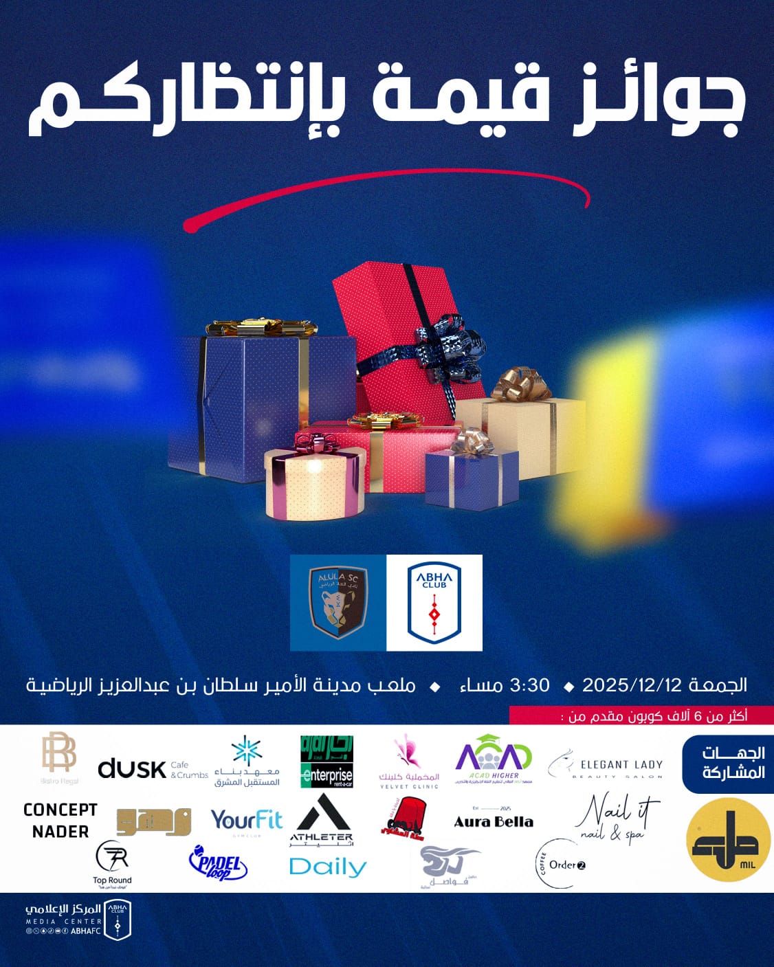 هدايا وجوائز متنوعة تنتظركم في منطقة الفعاليات المُصاحبة لمباراة أبها والبكيرية 🎁