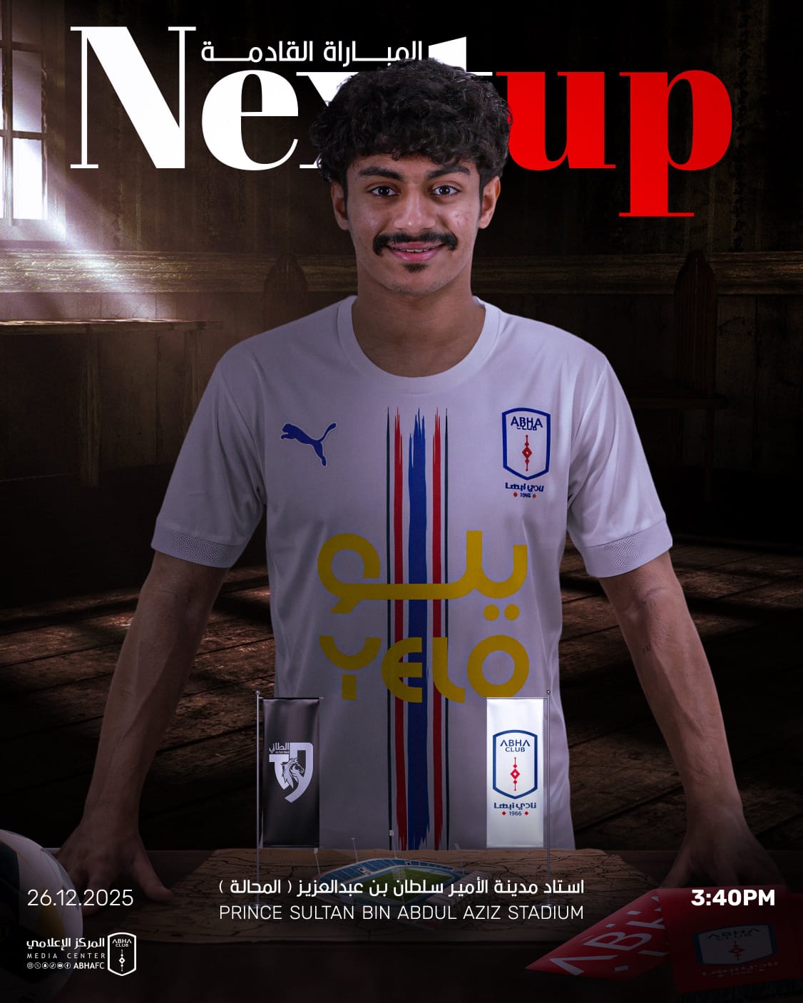 🗓️ الجمعة 26 ديسمبر 🆚 أبـهـا ✖️ الطائي 🕒 3:40 عـصـرًا 🏟️ ملعب مدينة الأمير سلطان بن عبدالعزيز الرياضية