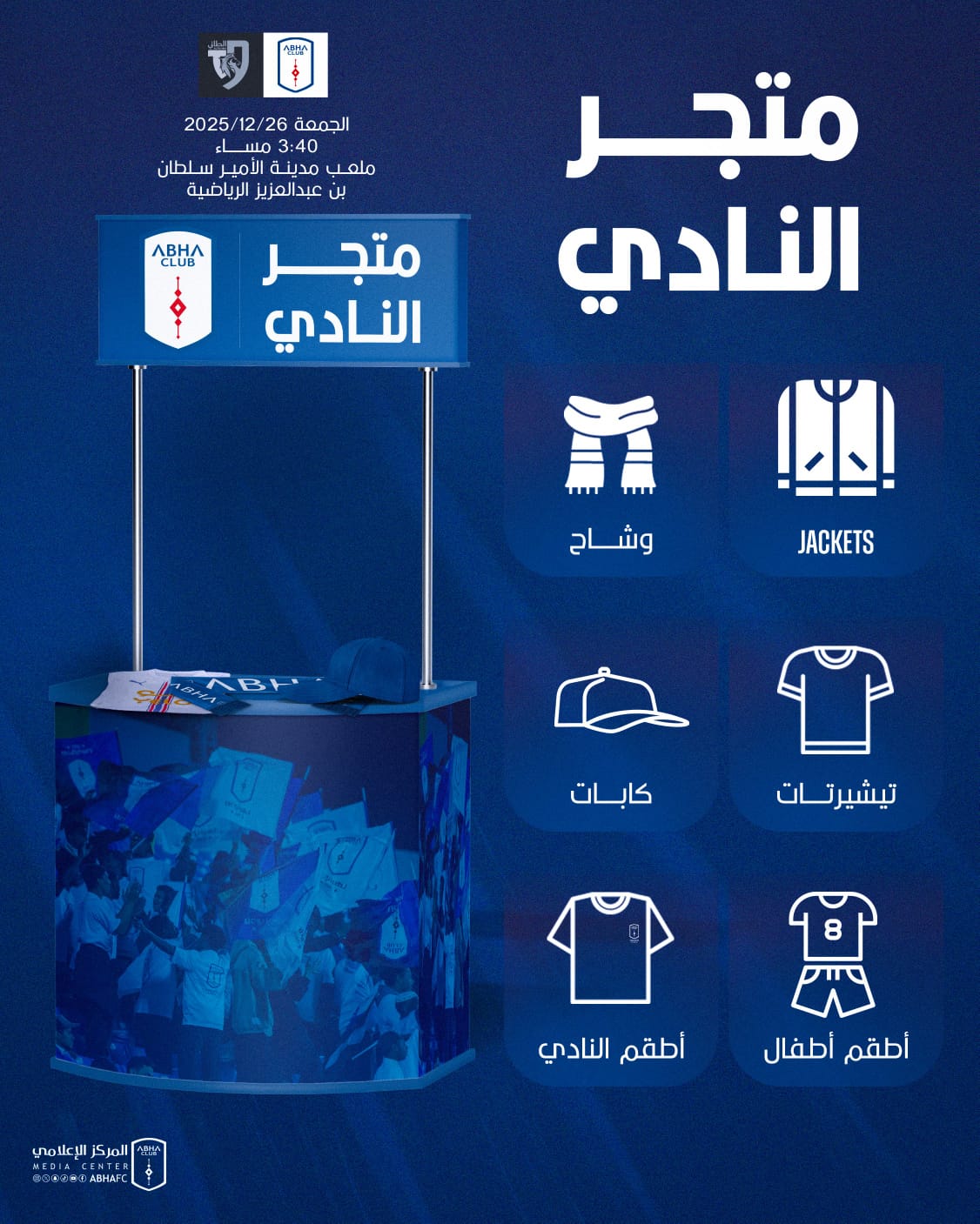 منتجات #نادي_أبها بانتظاركم في متجر النادي المتنقل، ضمن فعاليات مباراة أبها مع الطائي 🛍️👕