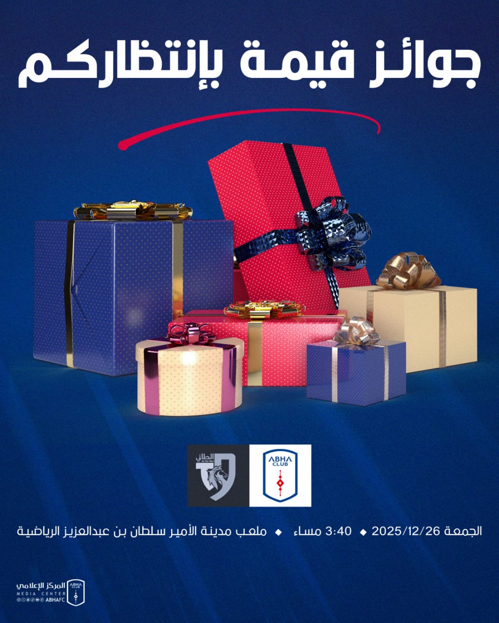 هدايا وجوائز متنوعة تنتظركم في منطقة الفعاليات المُصاحبة لمباراة أبها والطائي يوم الجمعة في المحالة 🎁