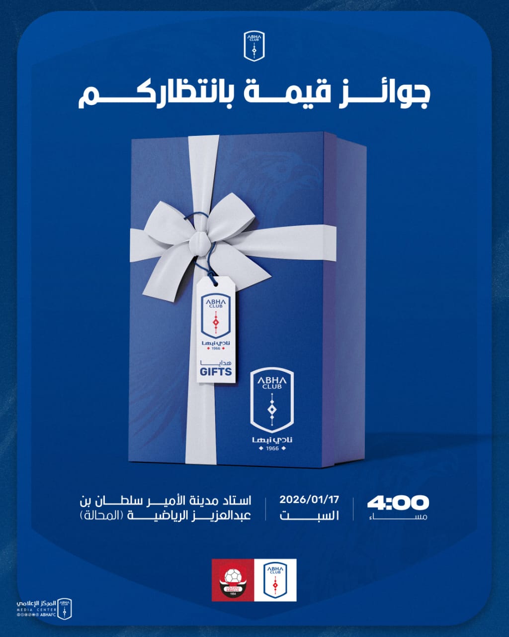 هدايا وجوائز متنوعة تنتظركم في منطقة الفعاليات المُصاحبة لمباراة أبها والرائد يوم السبت في المحالة 🎁