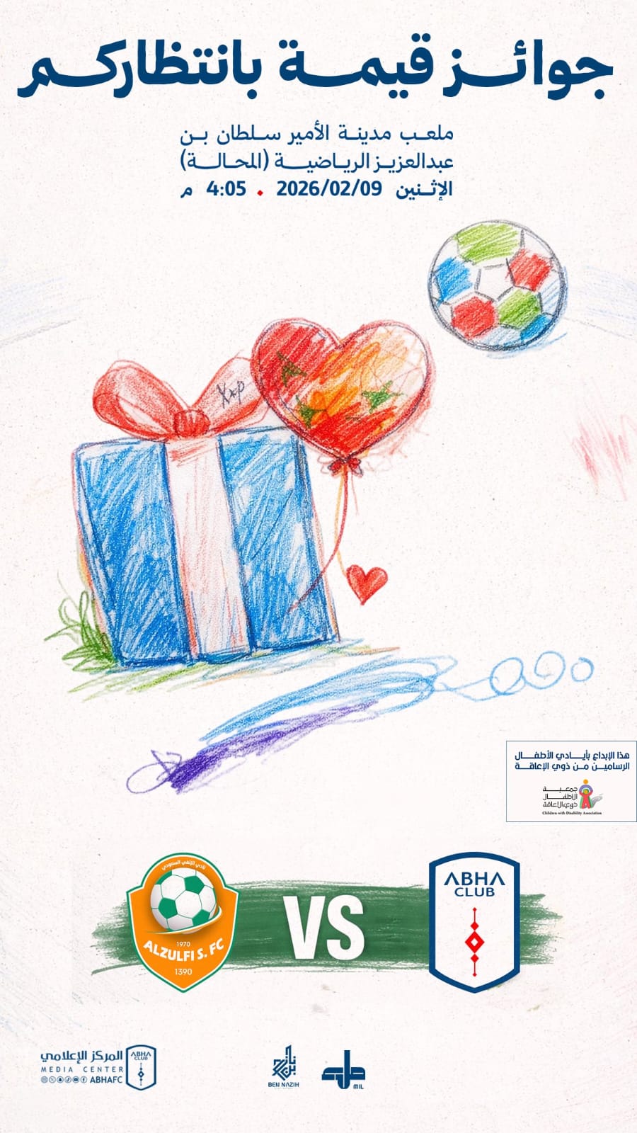 هدايا وجوائز متنوعة تنتظركم في منطقة الفعاليات المُصاحبة لمباراة أبها الزلفي يوم الاثنين في المحالة 🎁