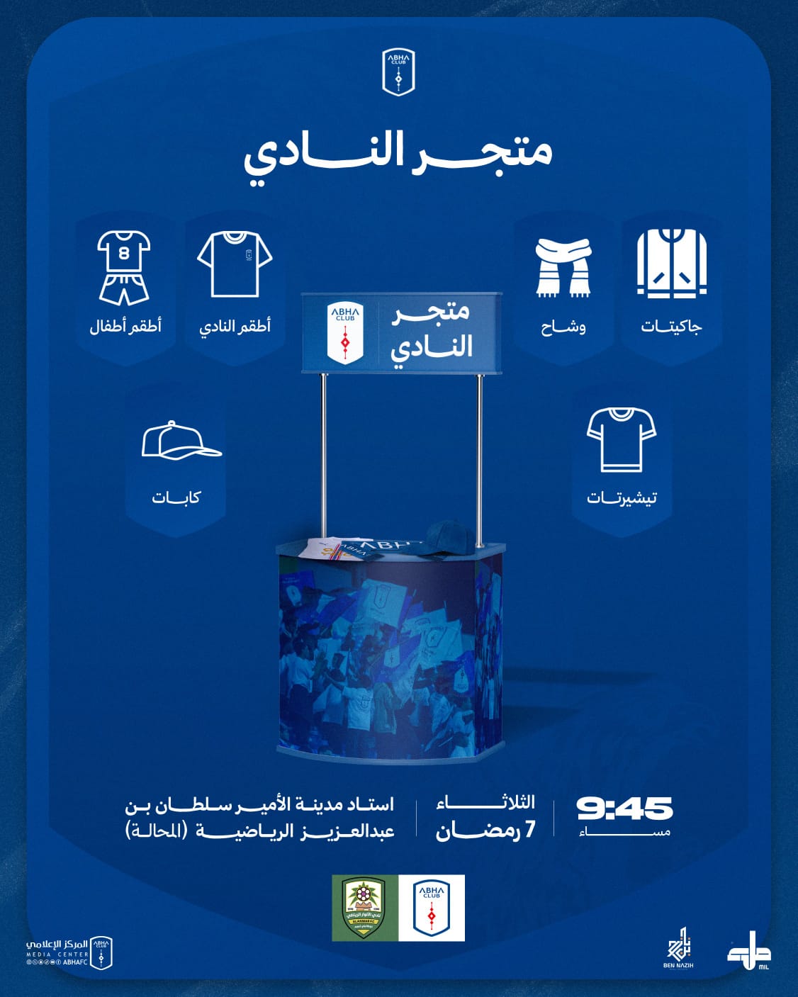 منادي_أبها بانتظاركم في متجر النادي المتنقل، ضمن فعاليات مباراة أبها مع الأنوار 🛍️👕منتجات نادي_أبها بانتظاركم في متجر النادي المتنقل، ضمن فعاليات مباراة أبها مع الأنوار 🛍️👕