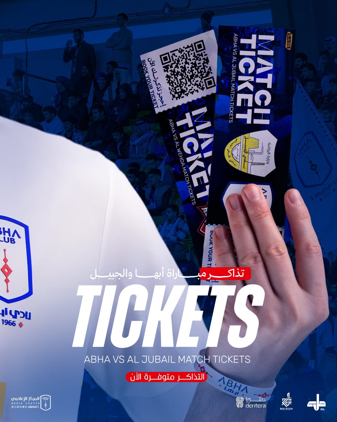 تذاكر مباراة أبها والجبيل على ملعب المحالة، مُتاحة الآن للحجز عبر الموقع الإلكتروني ⤵️ 🔗 ticket.abhafc.club/games/38/reser…
