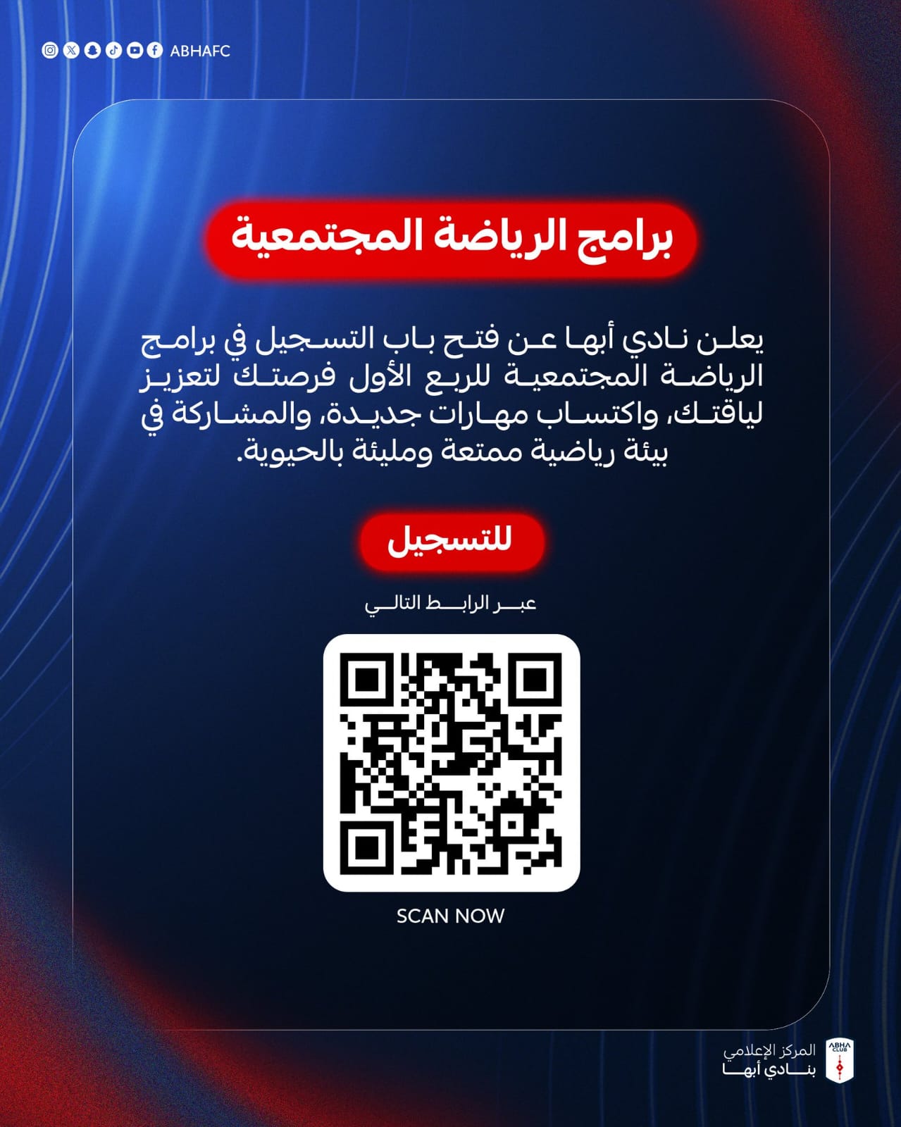 فتح باب التسجيل في برامج الرياضة المجتمعية للربع الأول 📝